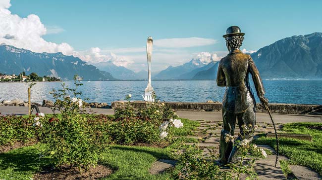 Drive alongside Lake Geneva/Lac Leman to the gorgeous town of Vevey, where comedian Charlie Chaplin spent the last 25 years of his life. Continue through the UNESCO World Heritage Site of Lavaux and its vineyards to Lausanne.