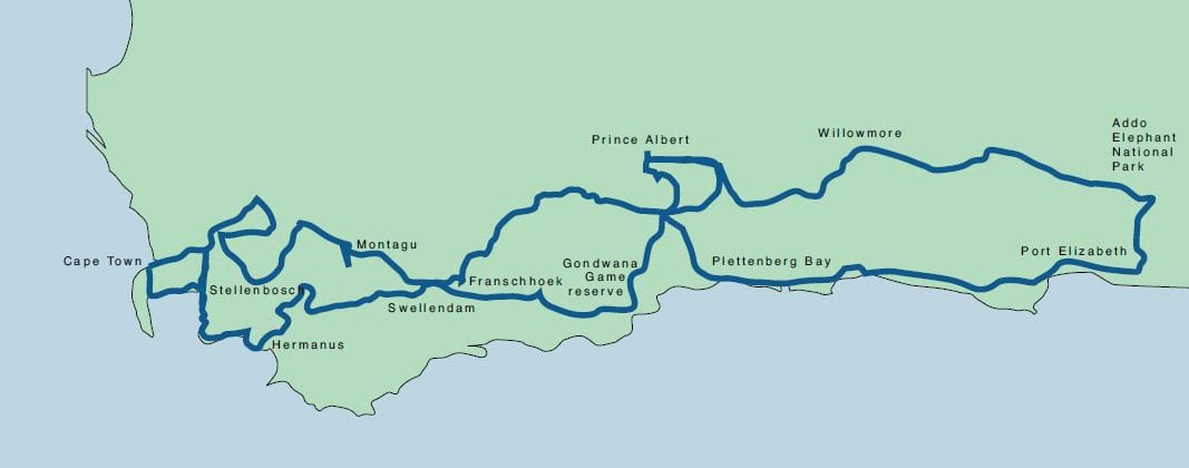 You will see whales in Hermanus (between June and November) – location for the world’s closest land-based whale watching. You will drive some awe-inspiring and stunning mountain passes. You will go on safari in the Addo Elephant National Park and in luxury private game reserves. You will visit cities, towns and quaint villages, drive along the coast, across rolling countryside and over incredible mountain ranges. The tour encompasses the Western Cape and a small section of the Eastern Cape regions of South Africa.